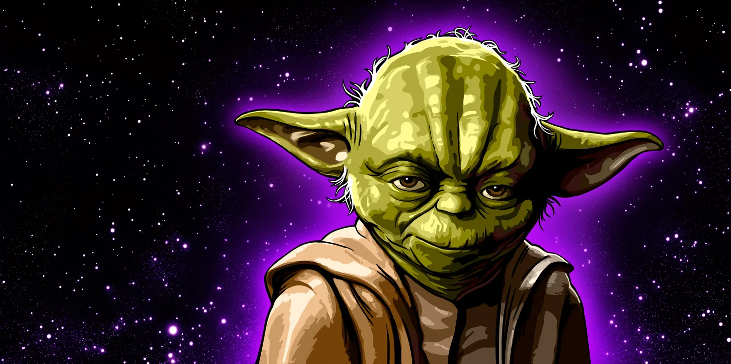 Yoda illustration created for Disney's limited edition Star Wars Trident gum packaging, including cg rendering the collectible gum bottles.