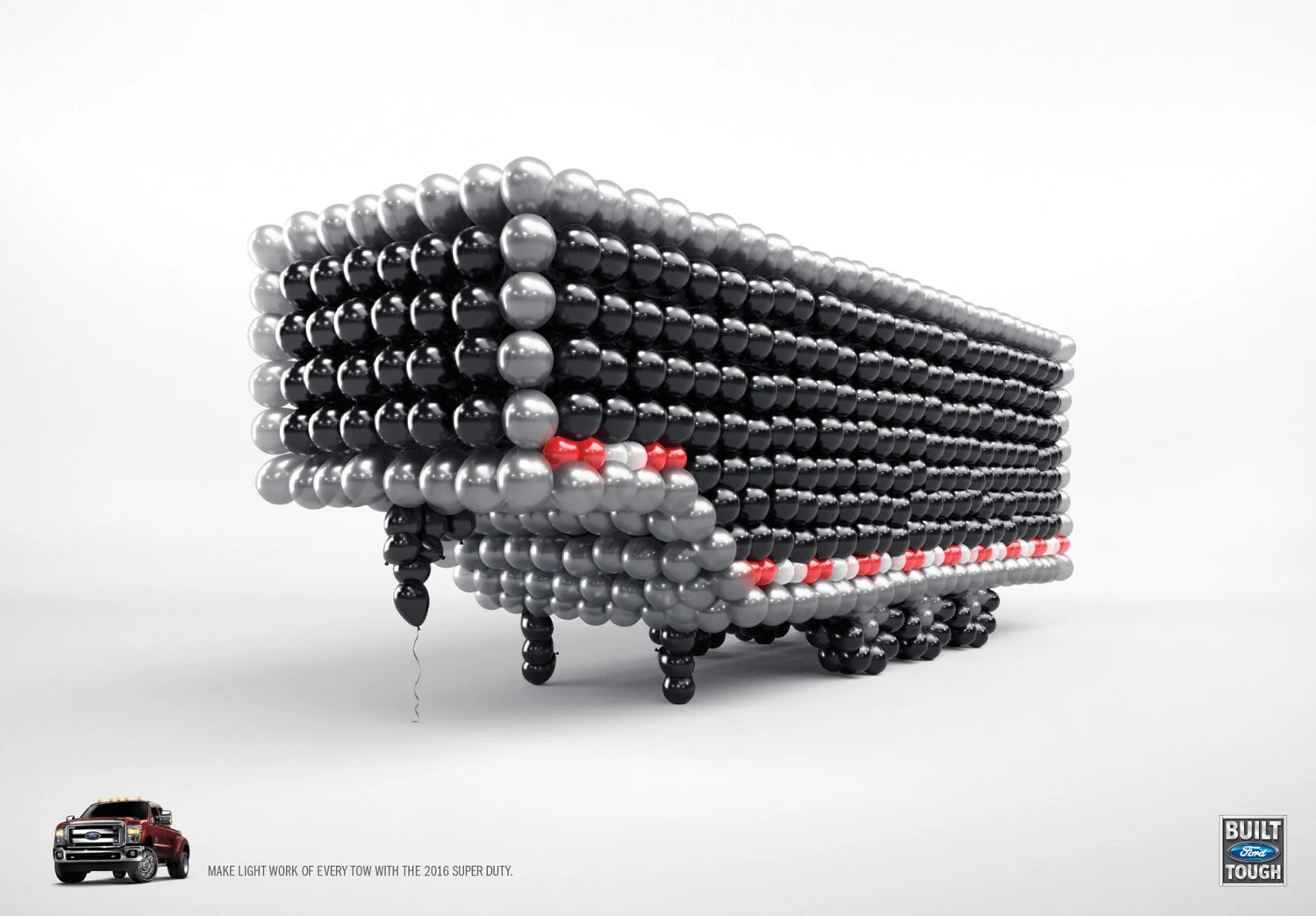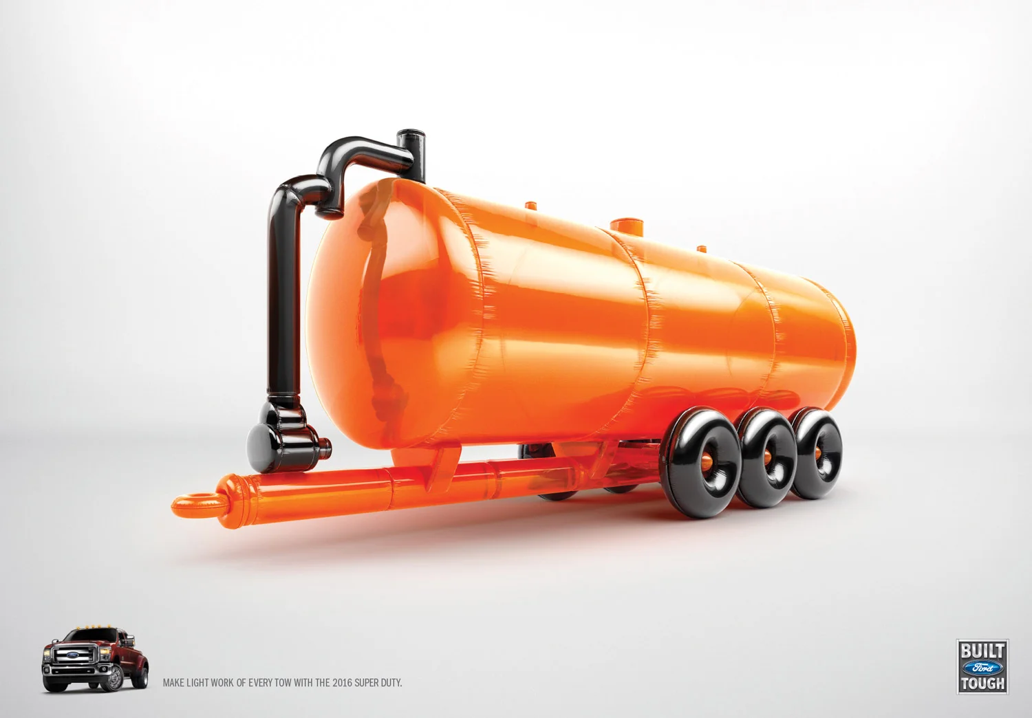 CG modeling and rendering of heavy towing objects made with inflatable materials for the Ford Super Duty advertising campaign. Featured in Luerzer’s Archive publication The 200 Best Digital Artists Worldwide.